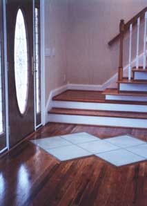 combine a stone medallion with the wood flooring in your foyer, kitchen,